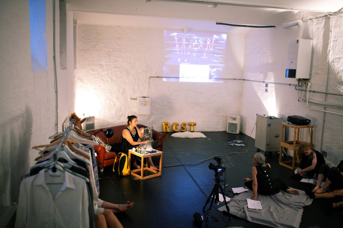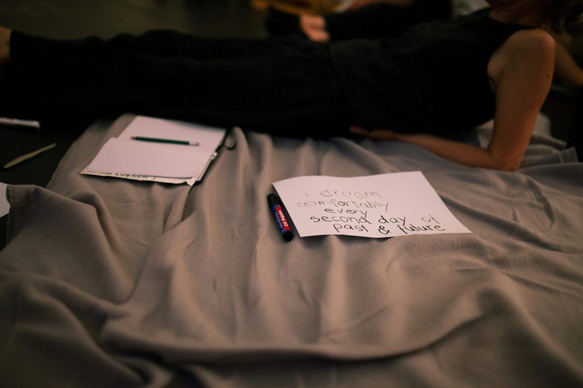 Im Schlaf entzieht sich der Körper gesellschaftlichen Normen und Pflichten, wandelt sich in einen unproduktiven, verletzlichen, irrationalen. Meist zurückgezogen in die Vertrautheit der Privatsphäre und Sicherheit des Zuhauses, schwinden Identität und Ego in Traumzustände jenseits zeitlicher Wahrnehmung und Vernunft. Der schlafende Körper ist präsent und abwesend zugleich. Der Schlaf ist so auch ein stiller Widerstand gegen Produktivität und Effizienz und gilt als solcher gegen zunehmende Optimierung im Sinne neoliberaler Doktrinen verteidigt zu werden. Was ist das Potential des kollektiven Fallen-lassens in den Schlaf, in einen Traum?