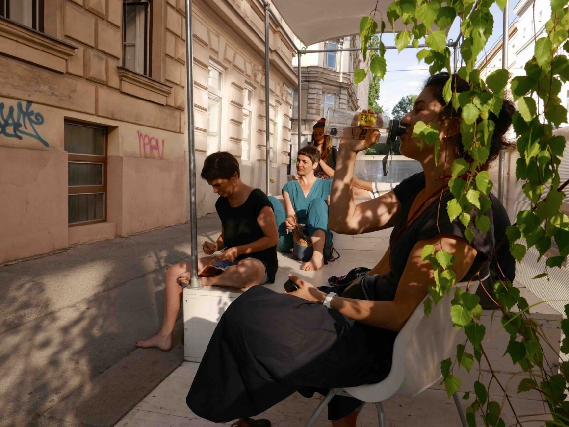 Claudia Heu (AT) ist eine in Wien lebende Künstlerin, Performerin und Dozentin. Sie ist in Europa, der Mongolei und den USA tätig. Ihre Arbeit umfasst ortsspezifische Performances, Installationen und Interventionen. Die Zusammenarbeit mit Filmemacher*innen, Aktivist*innen, Friseur*innen, Schauspieler*innen, Busfahrer*innen, bildenden Künstler*innen, Nachtwächter*innen etc. gestaltet sich je nach Projekt und Ort neu. Seit 2013 arbeitet sie mit mongolischen und österreichischen Künstlerinnen und Wissenschafterinnen an dem Forschungsprojekt Alga Bolokh- Vom Verschwinden in Ulan Bator, Wüste Gobi und Berlin. Alga Bolokh befasst sich mit bedrohten Orten und Räumen, mit dem Unerzählten und dem Nichtsichtbaren. www.claudiaheu.com