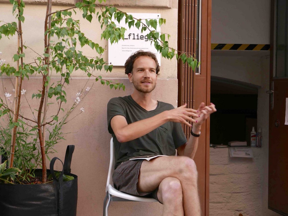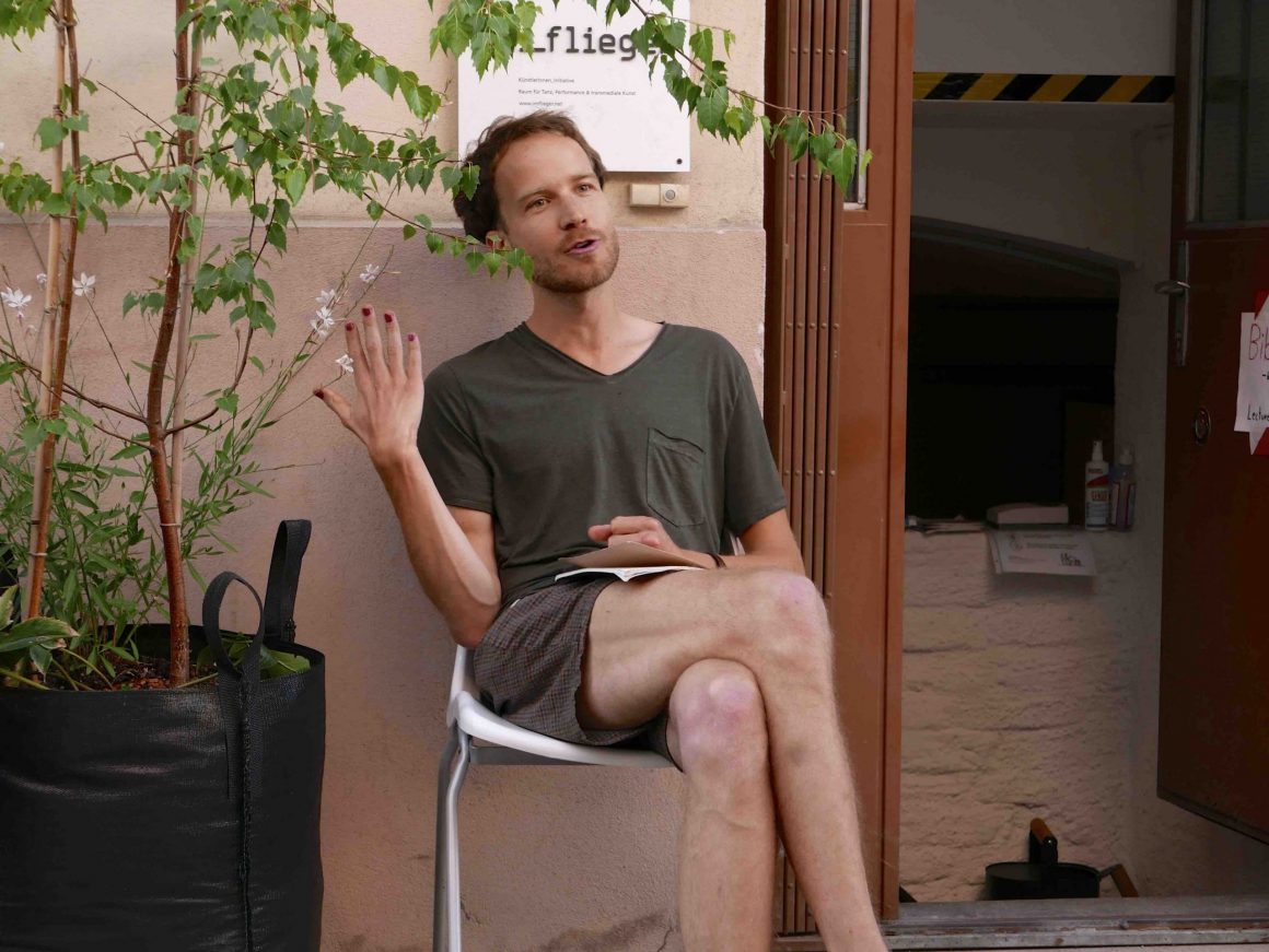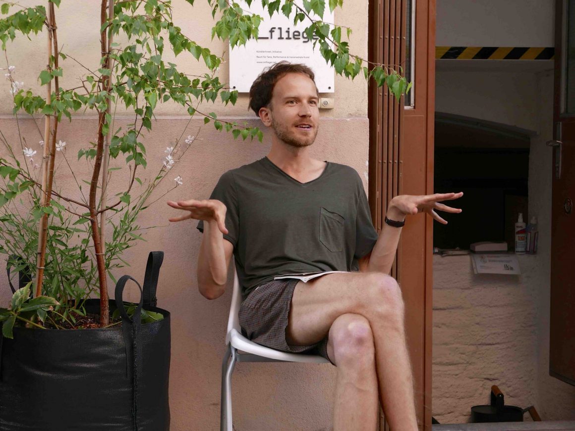 Tobias Draeger (AT) ursprünglich aus Deutschland, ist ein nomadisierender Künstler, der über die Grenzen von Tanz, Körpertheater und Osteopathie hinaus praktiziert. Seine Arbeiten konzentrieren sich oft auf die Körperlichkeit von Performer und Publikum, die Manipulation von Objekten und Materialien und die Entwicklung intuitiver Beziehungen mit und zwischen den Zuschauern. Seine Arbeit ist zugleich spielerisch und fokussiert, da er mit Praktiken und Dramaturgien experimentiert, die das Publikum zur Aufmerksamkeit und Konzentration auf die Folgen von Wahrnehmungen einladen
