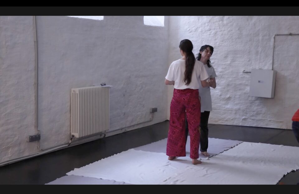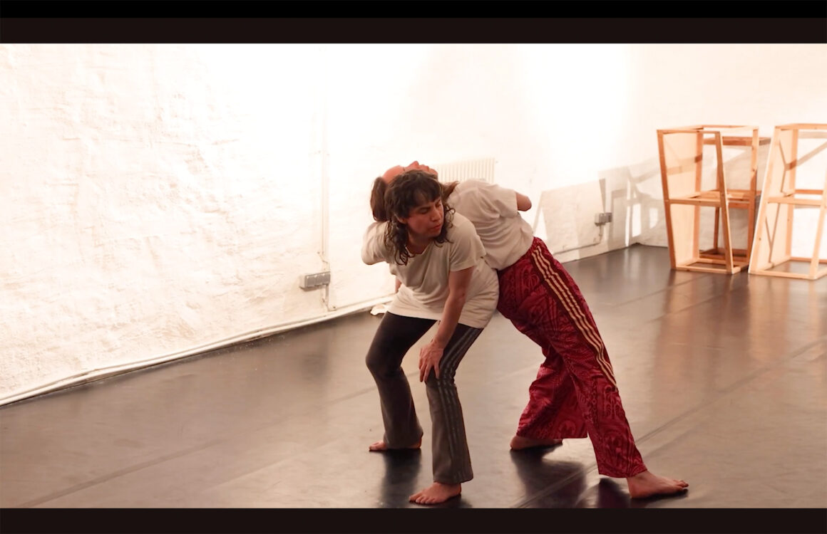 Das letzte Mal tanzten sie 2017 zusammen, als Elizabeth Teil von Bibas „Hustle in the Park“ war. Dieser Tanz entstand draußen auf Nellie’s Lawn im Prospect Park in Brooklyn und wurde später drinnen im Roulette in der Innenstadt von Brooklyn aufgeführt. Ein Echo davon findet sich im Tanzschaffungsprozess von draußen nach drinnen – vom Wienerwald in den Im_flieger RAUM.
