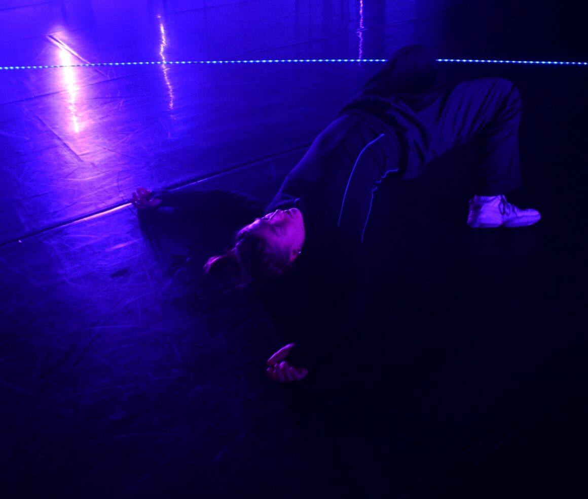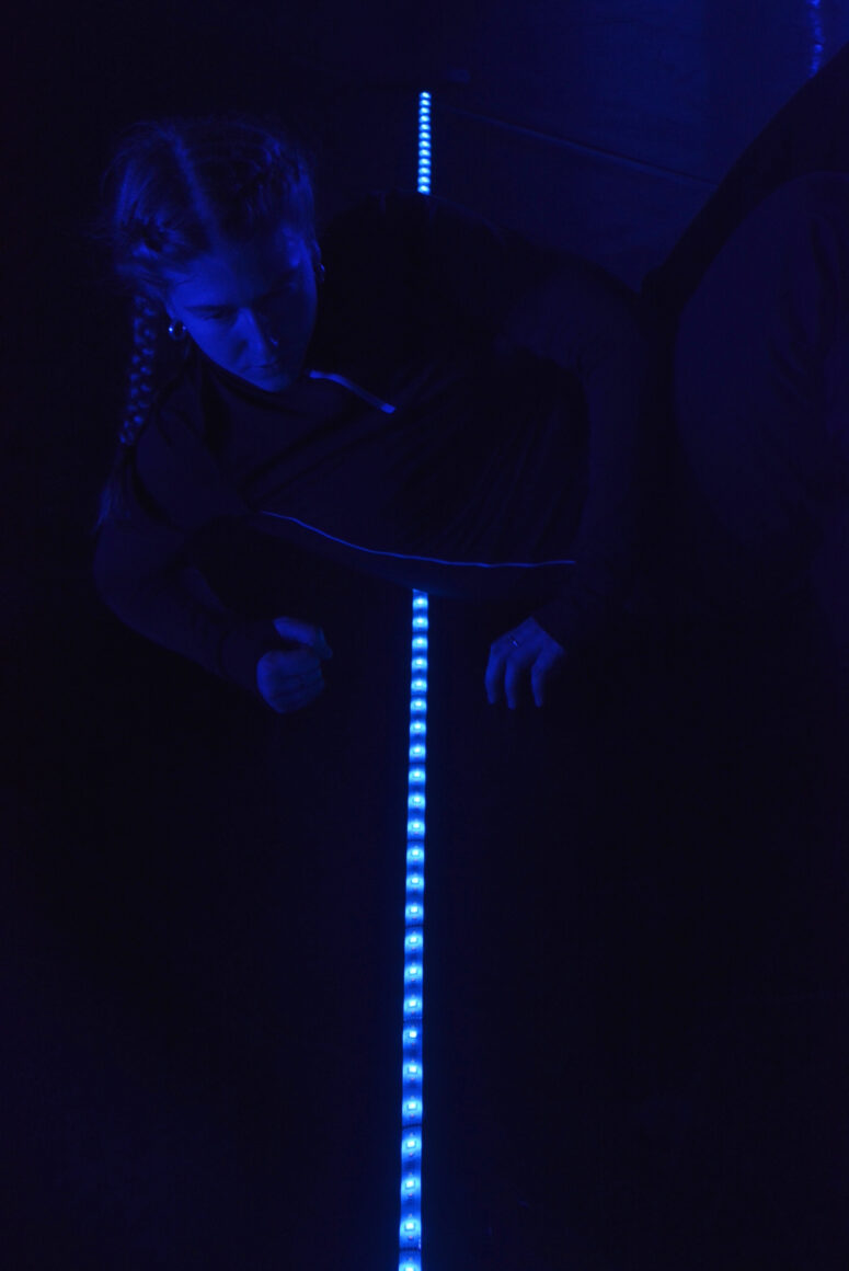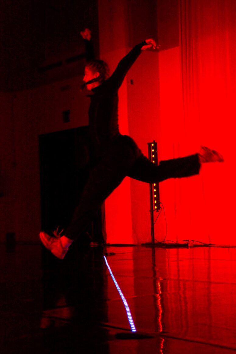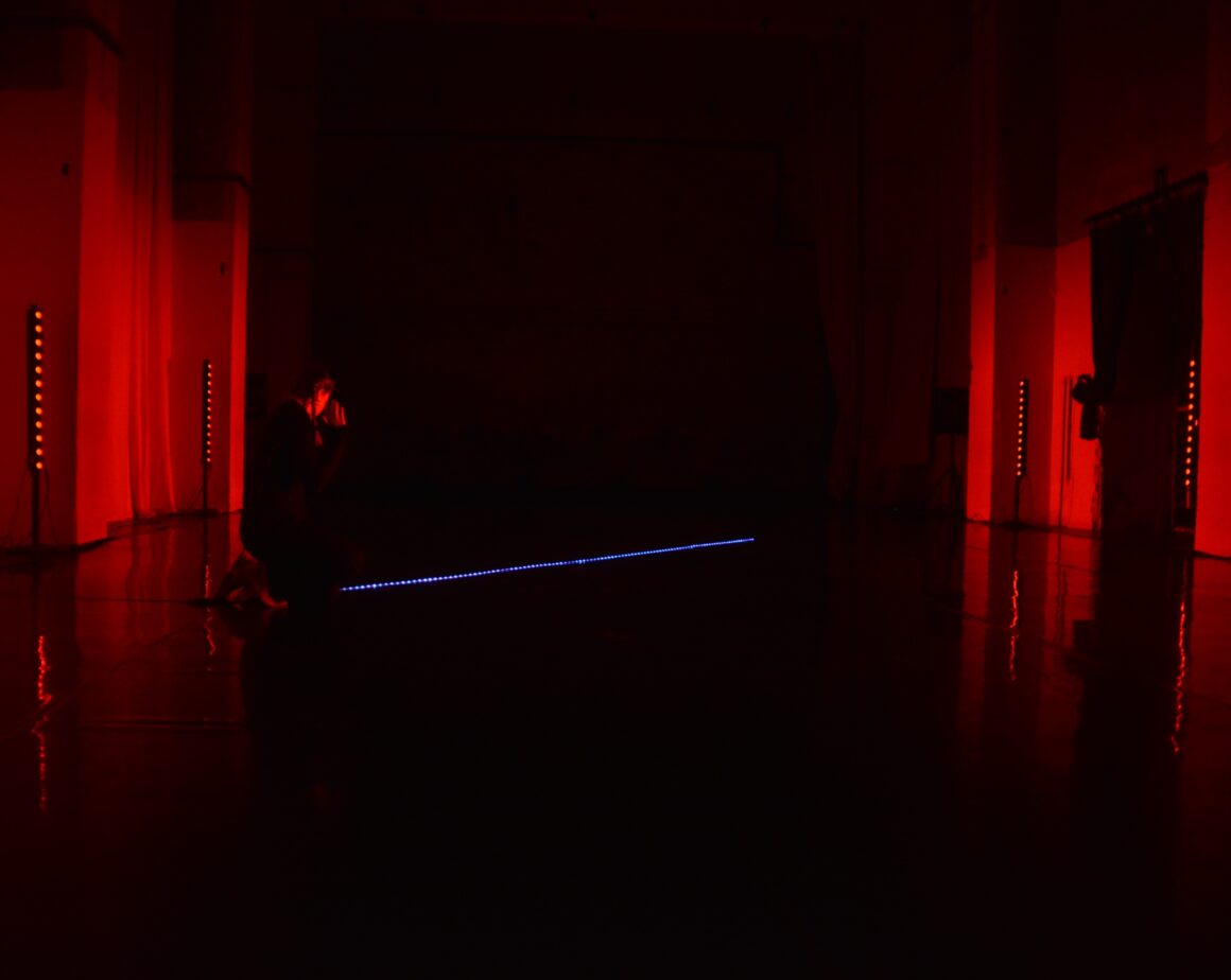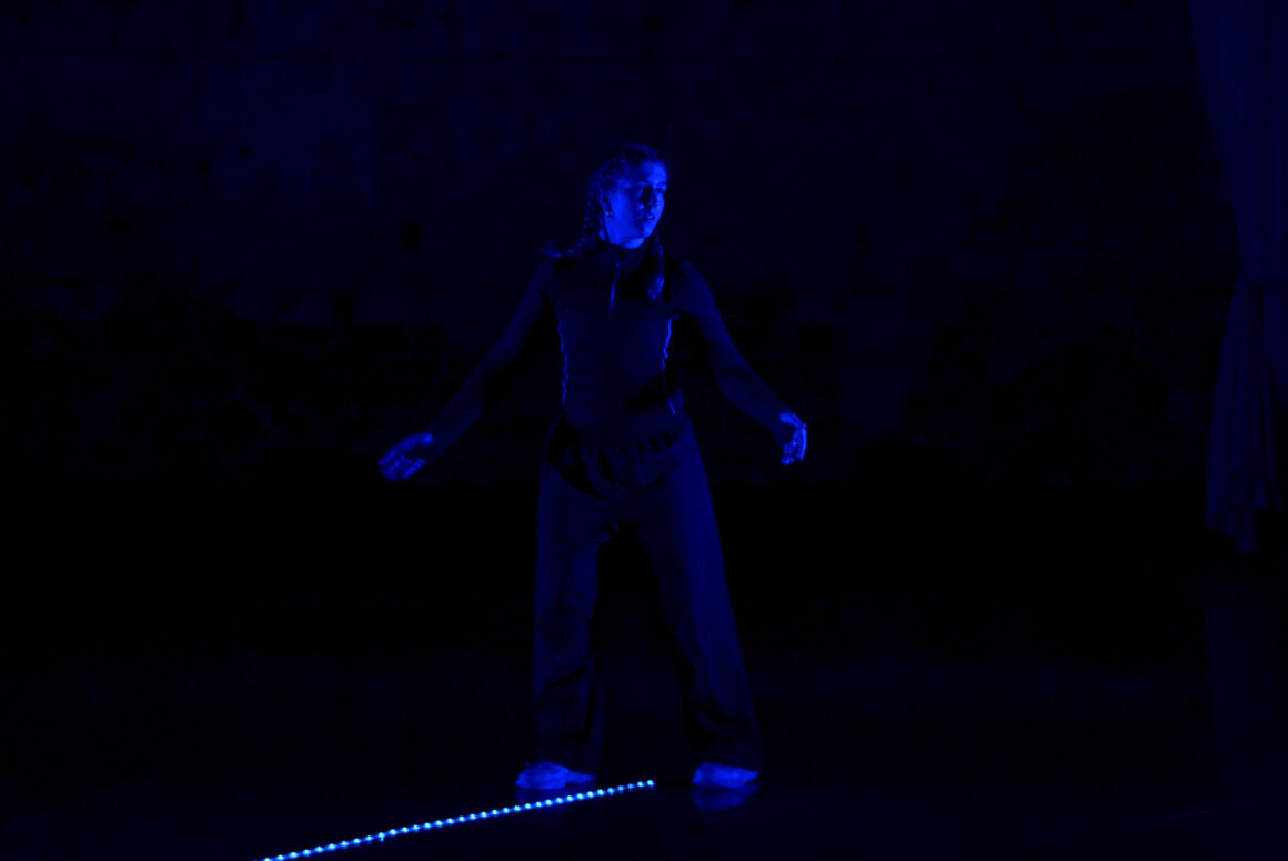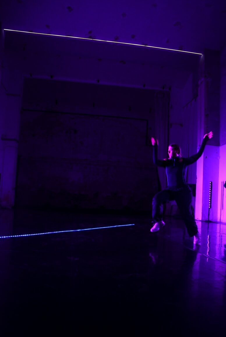 Inspiriert von den schlingernden Pfaden des Hurrikans Cindy, entsteht ein klares spieltheoretisches Muster, in dem der Körper durch den Raum wütet.