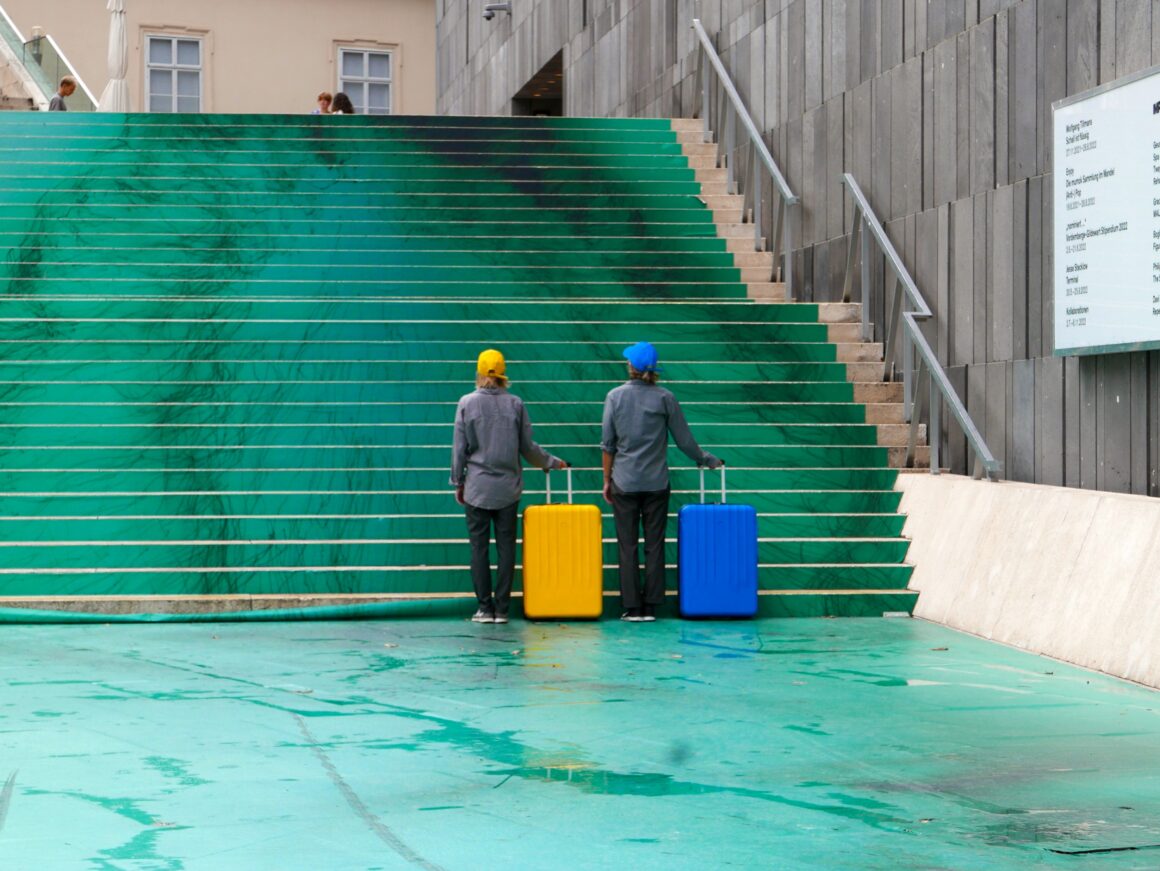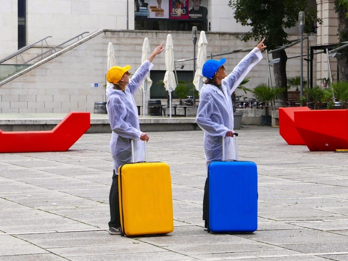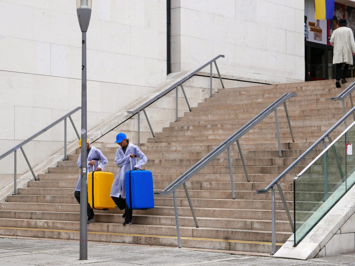 “Since years we are working with movements of urban and everyday life, and its routines; This time, with Duo / Yellow and Blue, we thought to remind the everyday passersby on what is going on in Ukraine and consequently with its people…”