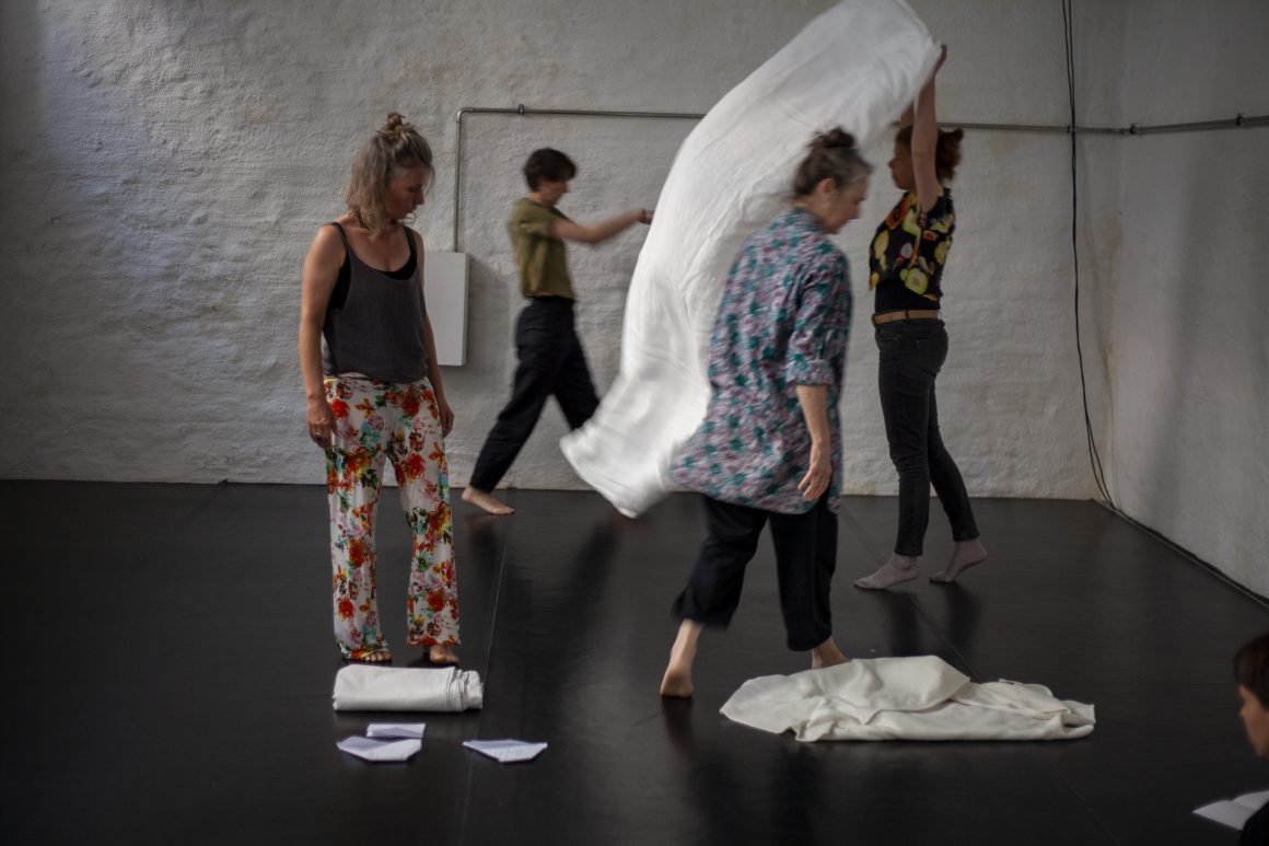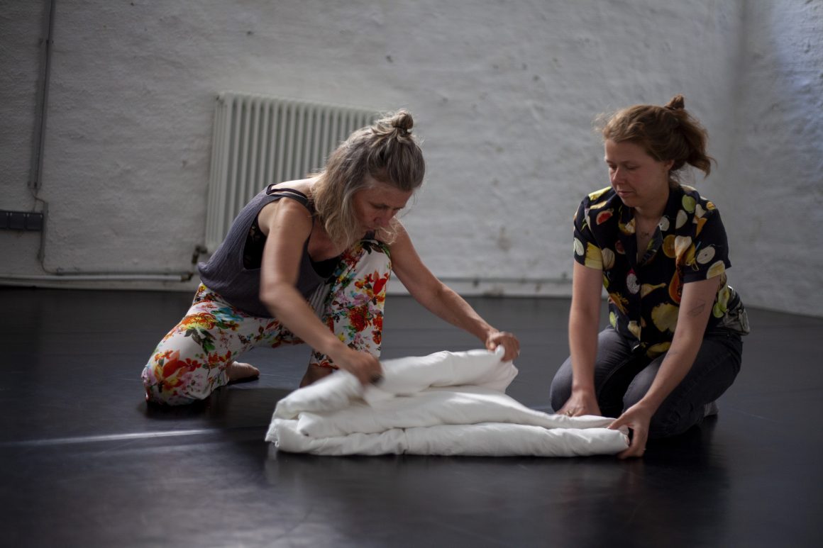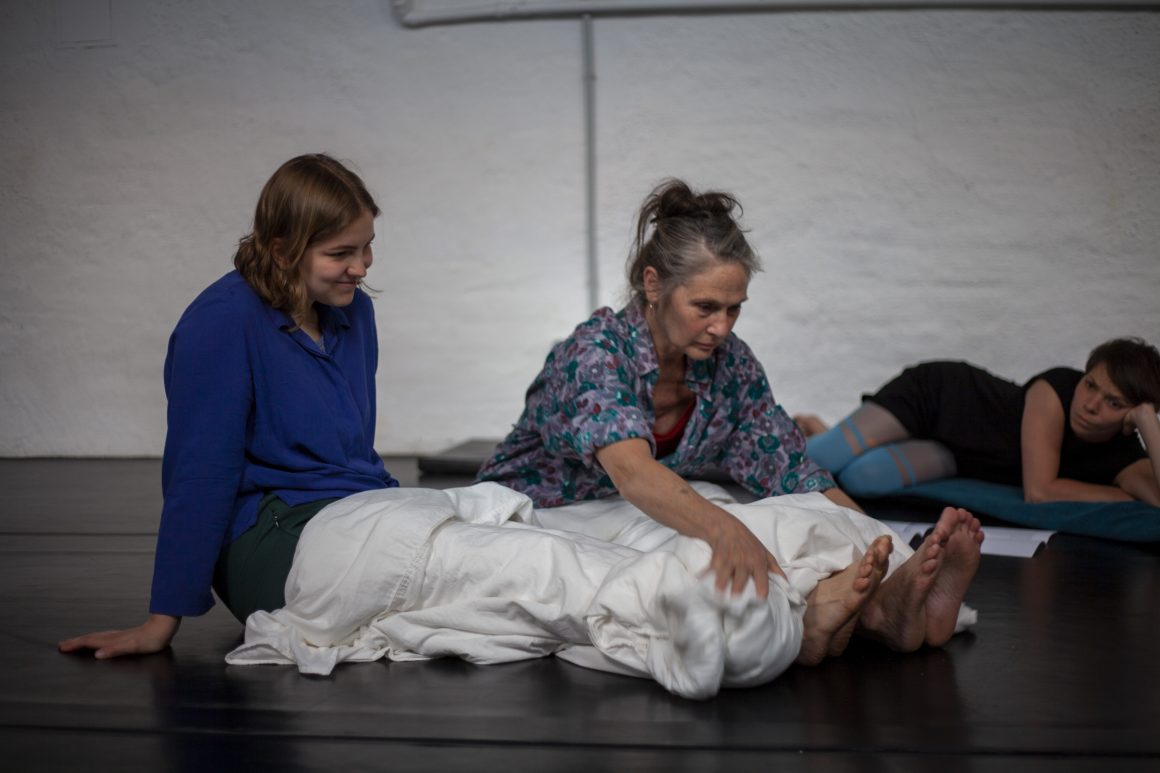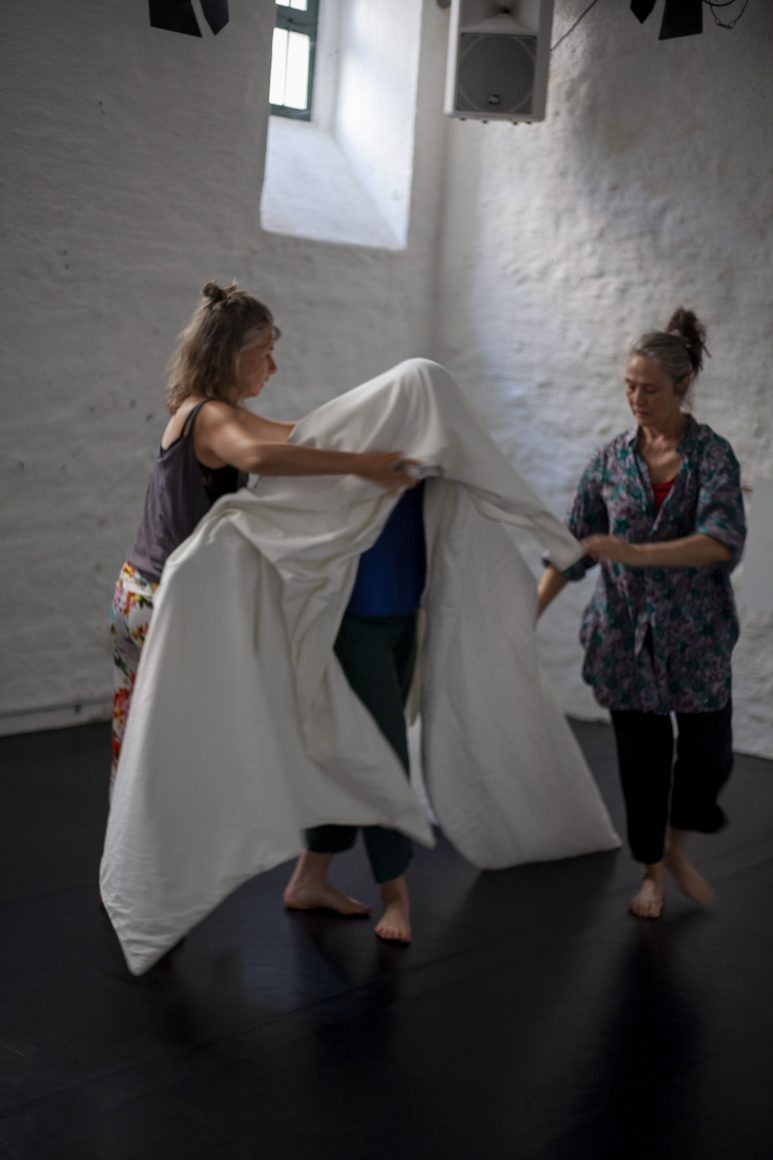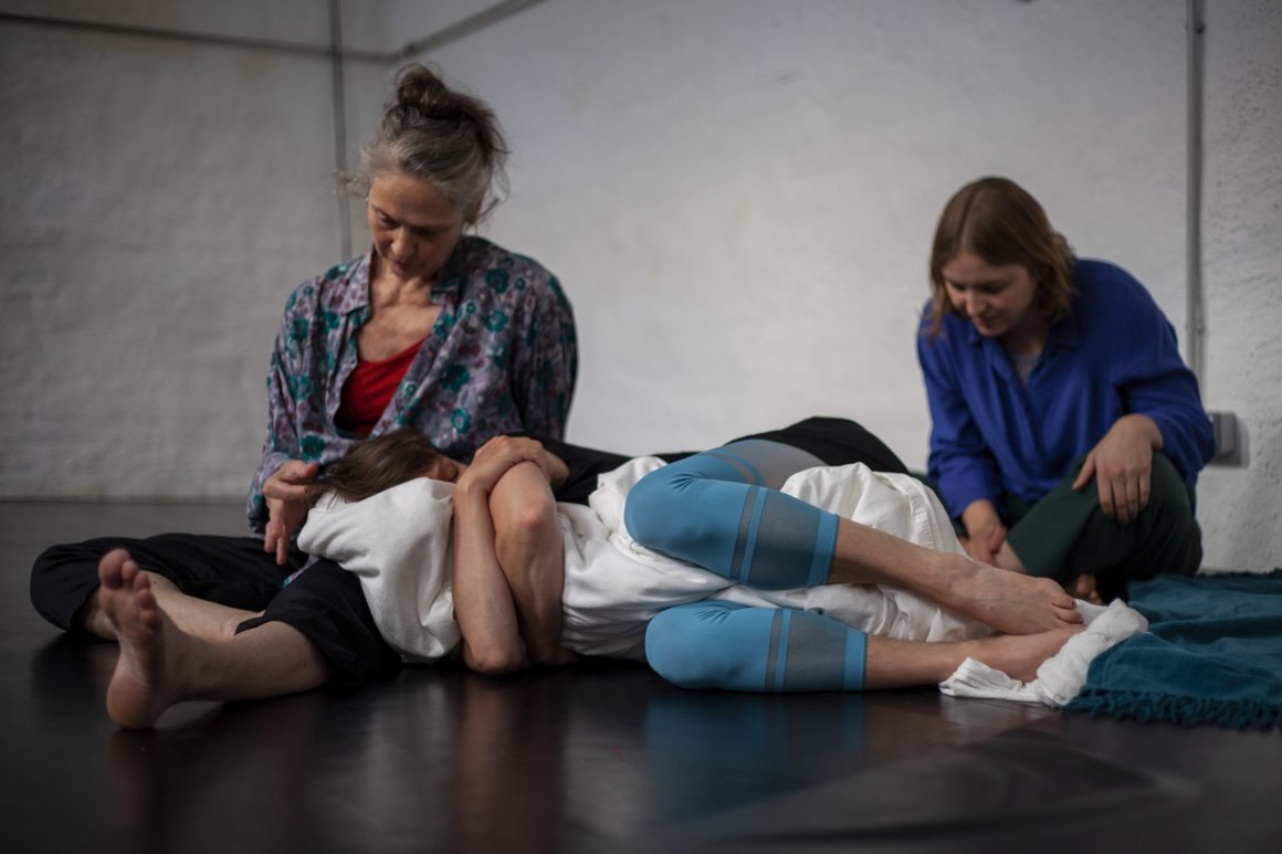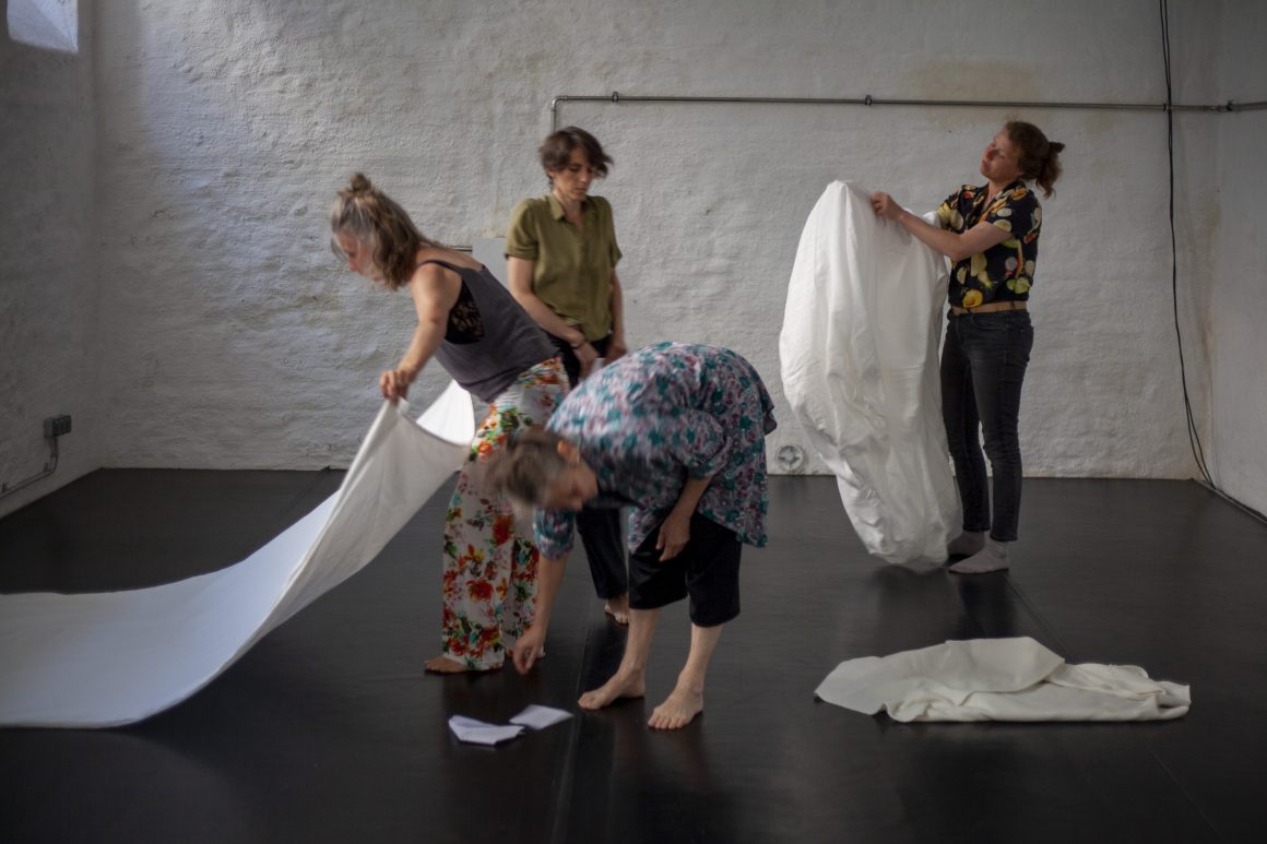 Zuhören, Erleben, Zusammenkommen, unsere Vorfahr:innen Erinnern. Eine persönliche Geschichte erzählen: Eine Landschaft des Trauerns: ein Ort der Intimität und Vertrautheit, an dem wir trauern können. Bezeugen, Aushalten. Wegwischen, Vergessen. Einen neuen Modus finden, mit dem Bettbezug der Großmutter. Wiederholen, Pulsieren, allein und gemeinsam, in Anwesenheit der Abwesenheit. Erhalten, Erinnern, Beziehen. Wir sprechen, wenn wir Raum dafür bekommen, und bereit sind, ihn uns zu nehmen. Erzählen, Wiederholen, Erholen.