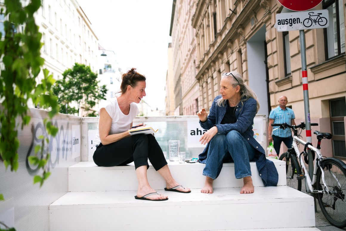 The participating artists Adriana Cubides, Jakob Egger, Ella Felber, Kim Groneweg, Margarethe Maierhofer-Lischka, Bri Schöllbauer and Joanna Zabielska have been exploring new contexts and ways of working of artistic interactions in public space in the group since the beginning of April 2022 and now share their respective individual practices, which they have developed or deepened in the last weeks.