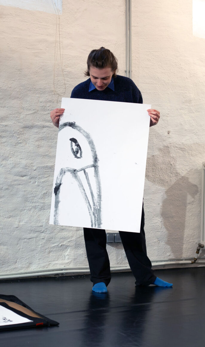 Sunggu Hong gropes his way along the things that can’t be physically held and yet still seem essential to hold on to, Emilia Lichtenwagner sticks to her drawing.