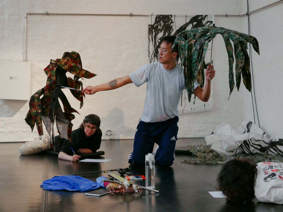 We celebrate the cathartic power of cursing and swearing, beyond the stereotypes of aggression and violence. We make a radical attempt to find silence. We share moments outside the logic of linearity. We throw back looks, let eyes linger, roll (on) and wander. We force thought to forget us. We hate “the thing” because we feel disgust – or do we feel disgust because we hate “the thing”? We address the silence and acknowledge abusive power dynamics as a societal issue and collective responsibility. We let the body move on its own terms. We redeploy the potency of tactical language and movement to the realm of poetics. We come together – in absurdity, in failure, in joy and in amazement.