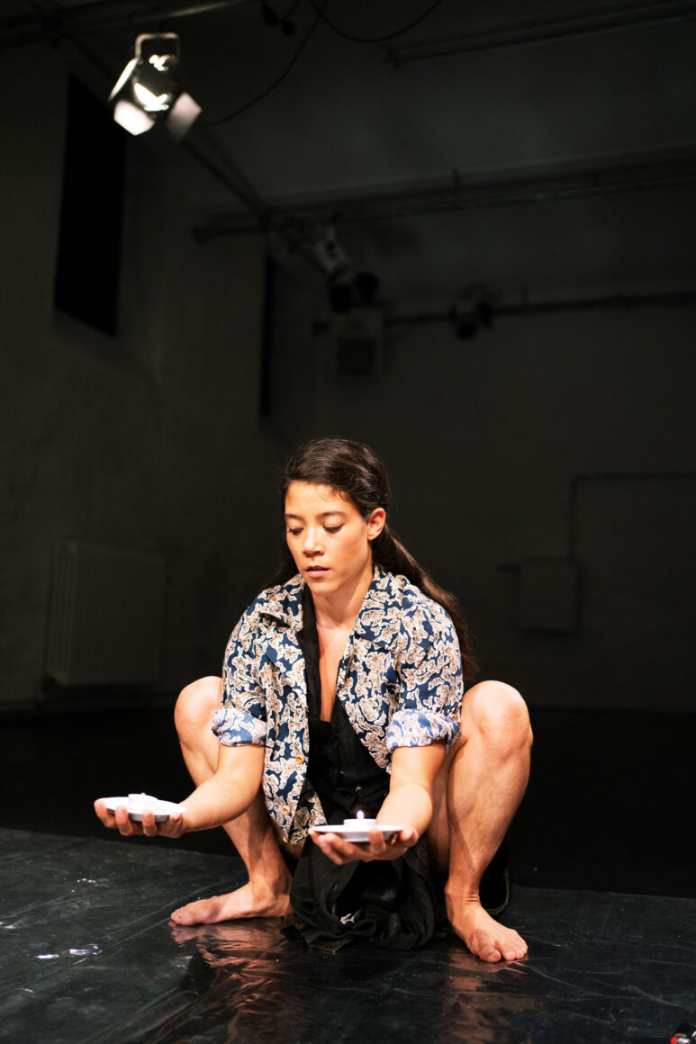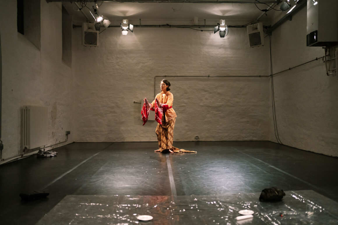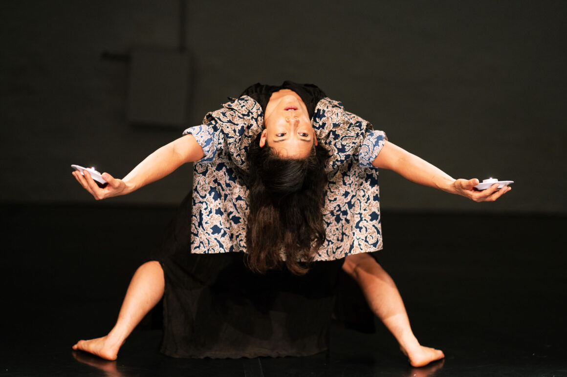 Ancestors Echoes ist Maartje Pasmans intime Reise zu ihrem niederländisch-indonesischen Erbe, bei der sie die Tänze ihrer Vorfahr:innen mit Erkundungen durch zeitgenössischen Tanz verbindet. Durch diese Tänze webt sie Klanglandschaften aus ihren Wurzeln und navigiert durch das generationenübergreifende Schweigen, das ihre Identität prägt. Das Mantra „kita tari, tari kita“ – „wir tanzen, unser Tanz“ – schwingt mit und verbindet Vergangenheit und Gegenwart. Durch Bilder und Bewegungen hallt das Echo der Vergangenheit nach und ermöglicht es ihrem Geist, im Hier und Jetzt Ausdruck zu finden.