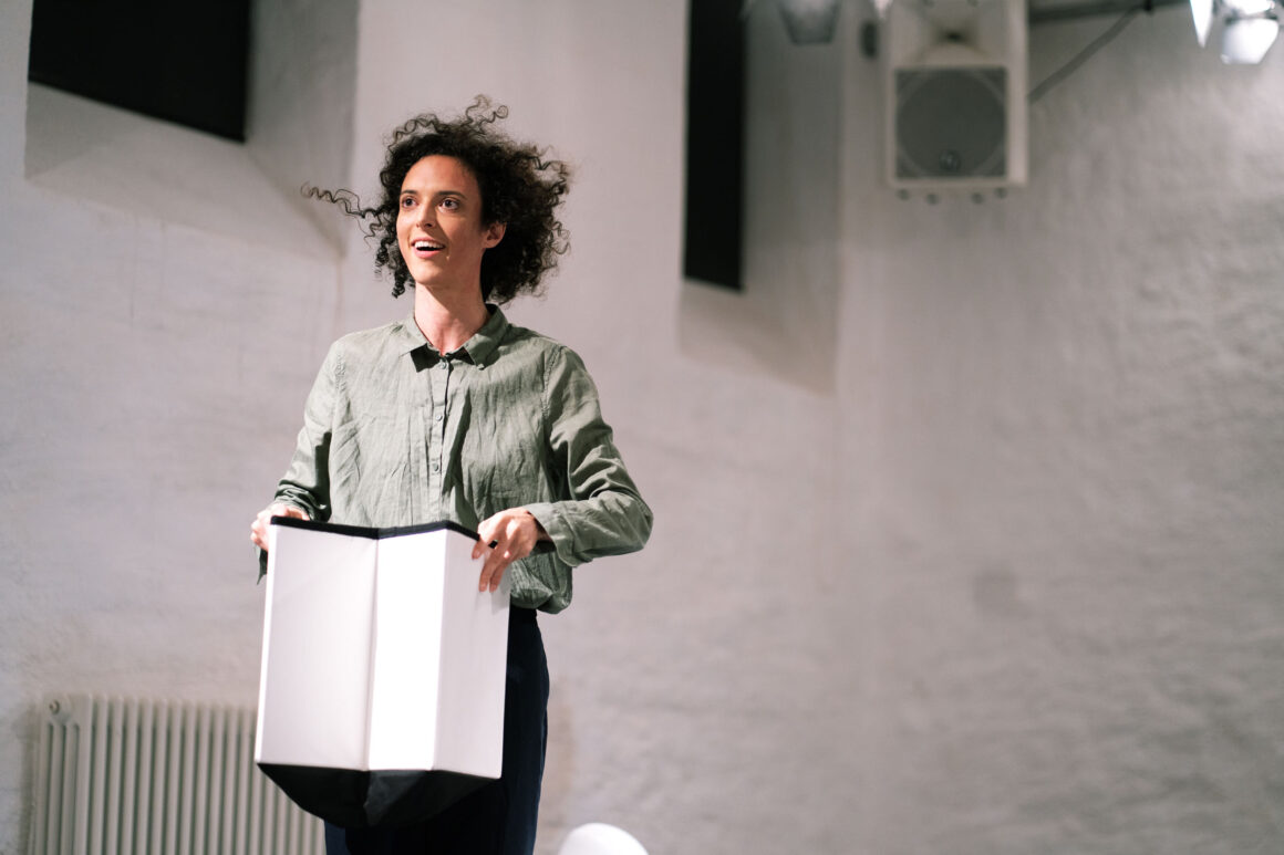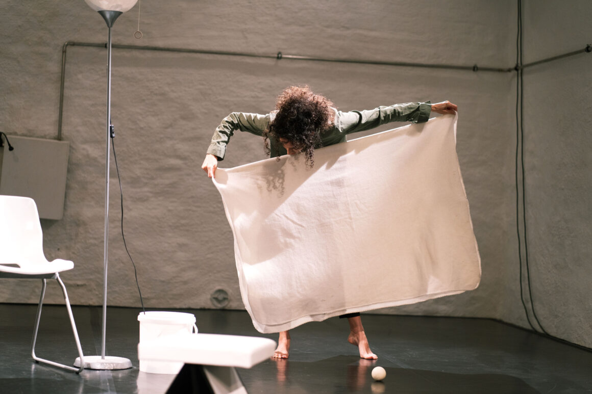 Die Vorarlberger Künstlerin Stefanie Momo Beck untersucht in ihrem Solo „zum Wohl“ Facetten eines komplexen Zustandes, dem Wohlbefinden – einem idealisierten Zustand, dem gesellschaftlich und individuell unbewusst ständig nachgejagt zu werden scheint. In „zum Wohl“ beobachtet sie die fragile Wechselwirkung von Verkörperung und Emotionen. Durch das Spiel mit Objekten und das in-Bezug-dazu-Setzen der Performerin wird das Publikum zu einem visuellen und emotionalen Dialog mit dem eigenen Wohlbefinden eingeladen. Der aktuelle, sich verändernde Zustand der Performerin beeinflusst auch den Verlauf des Stückes. Das Finden und das Aushandeln eines körperlichen Wohlbefindens stehen im Vordergrund der Performance.