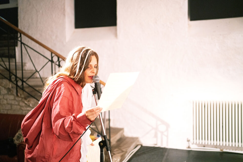 Veza Fernandez (ES/AT) is a dance, voice and performance artist based in Vienna. Her work deals with the realms of the poetics and politics of vocal expression as a place of relation, imagination and transformation. She entangles singing, writing, dancing and speaking practices as bodily forms of study, experimentation and performance. Her pieces are sensitive and intense, casting polyphonically a convocation of voices and presences that yearn to move and to be moved. Her background stretches between Philology, Pedagogy, Theater, Music and Contemporary Dance. Fields that in one way or the other influence her artistic research and modus operandi within art making and art presenting. Fernandez’ work is strongly rooted locally, infiltrating from within the underground scene bigger dance and theater institutions. She holds a Masters in Choreography from DAS Graduate school (Amsterdam Academy for Theatre and Dance). Her work has been shown amongst other in brut Wien, Tanzquartier Vienna, Sophiensaele Berlin, Gesnerallee Zürich, de Singel Antwerp, La Casa Encendida Madrid. www.vezafernandez.com