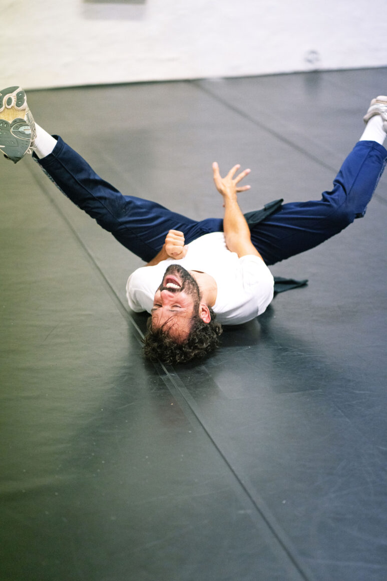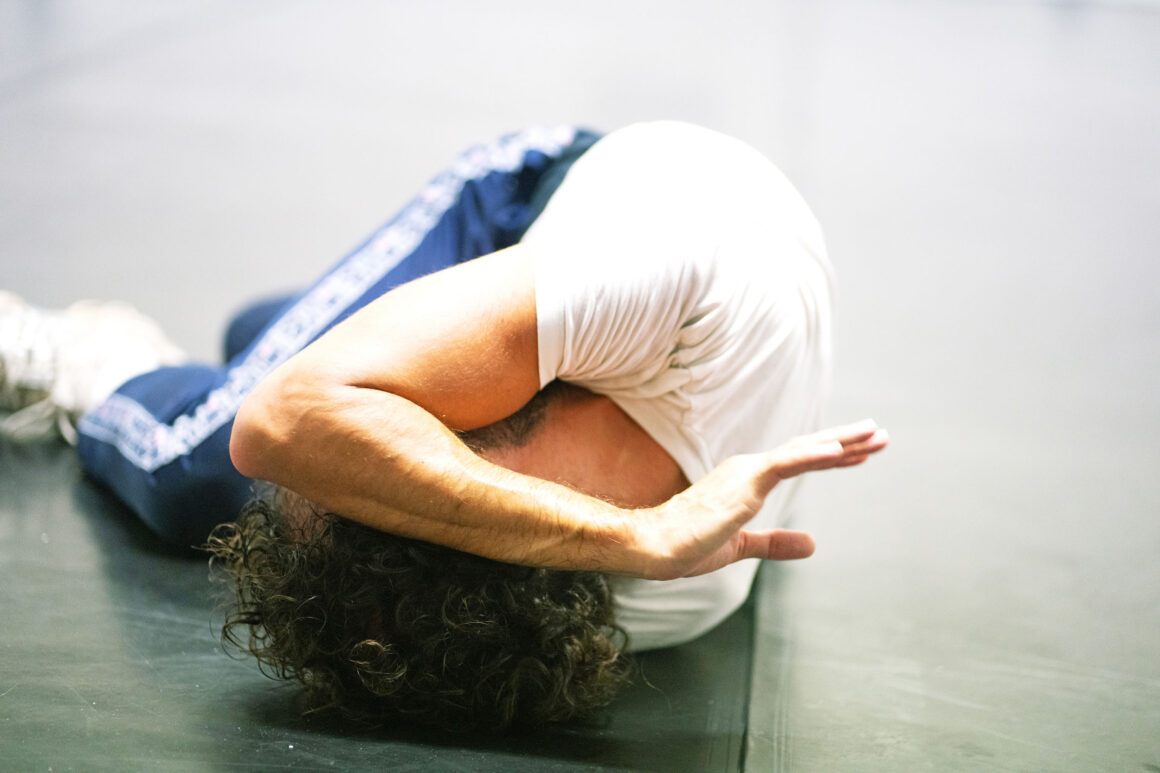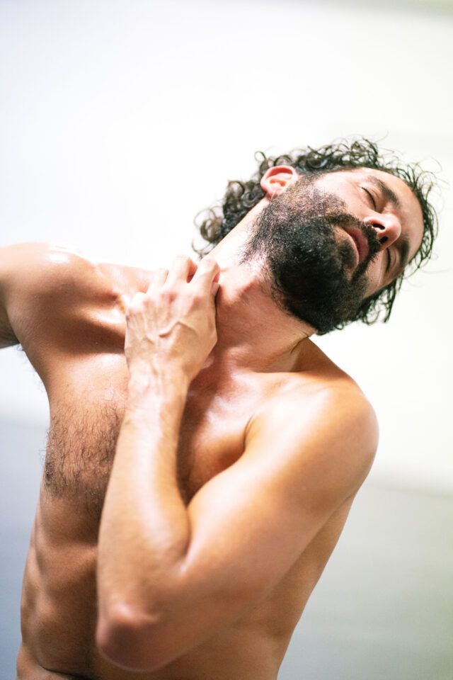 Victor Pérez Armero questions the suppression of our true thoughts, feelings, and desires, and thus our authentic selves. His research focuses on the somatic memory of psychotropic experiences, using deep listening to promote a state of expanded consciousness. The internalized repressions that we may have as individuals and as a society should find expression: movements of opening, unfolding, overturning, in which the vertical structure of the body dissolves and transforms into a series of spirals and turns, shaped and reshaped by the need for these emotions to be seen.