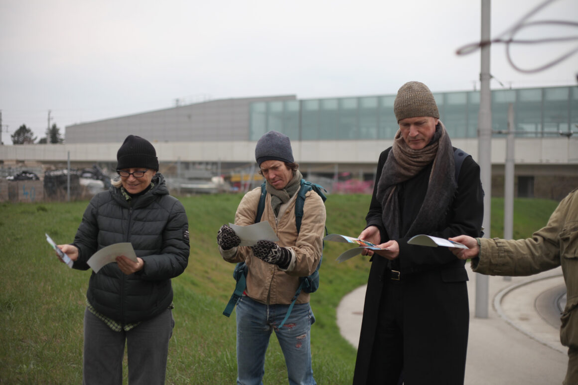 Wir laden ein zu einem gemeinsamen Begehen, Beobachten und Wahrnehmen der noch offenen Wunden einer sich erweiternden, vom Automobilismus getriebenen Stadt und versuchen das (Über)leben auch in diesen geopferten Zonen (auf)zu spüren.