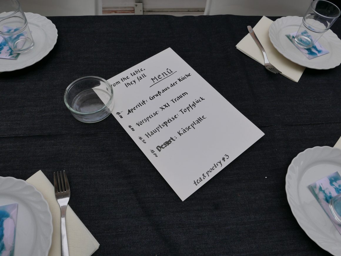 der frühling lädt zu einer gemeinsamen tafel auf der landebahn, gedeckt mit gedichten und gekocht mit geträumten. bringe lese höre, sätze von der anderen seite des bewusstseins. dazu gibt es tee. (weil gedichte lesen gut für die umwelt ist)