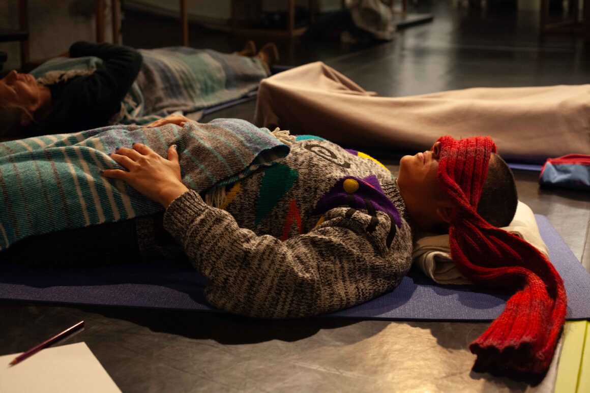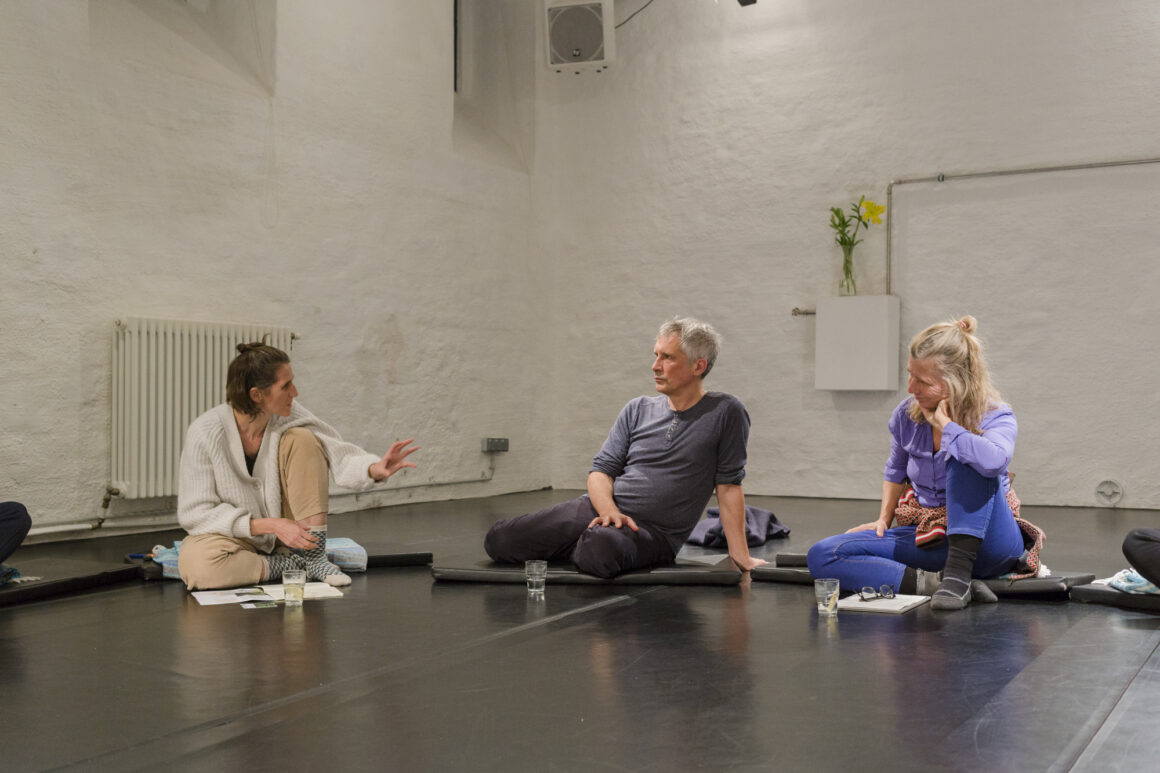 Since March 2023, the temporary school The Practice of Practise: Teaching as Artistic Research – Performative Art, Dance and Somatics, directed by Malcolm Manning, has been researching (transmedial) practices of movement and perception at the interface of teaching and performance. The participating artists – Carola Fuchs, Fiona Hanley, Therese Leick, Asher O’Gorman, Christina Rauchbauer and Nina Sandino share their working processes on Thursday 30.11. and Saturday 2.12.2023. The aim was to refine and question existing practices both individually and collectively, as well as to develop and practise new practices. The boundaries between what we traditionally understand as teaching and performance were blurred and new formats were explored. Sharing through teaching is seen as both a form of artistic research and performance.